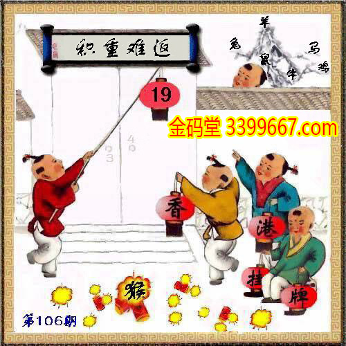 106期正版彩图挂:19爆:猴 挂牌成语:积重难返 挂牌出肖:兔鼠牛羊马鸡