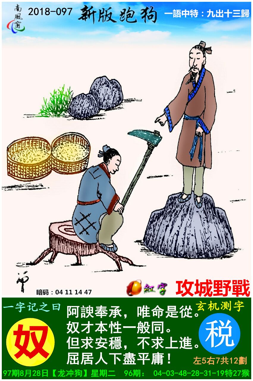 主题 : 097期:新版跑狗一字記之曰【奴】玄機測字《税》