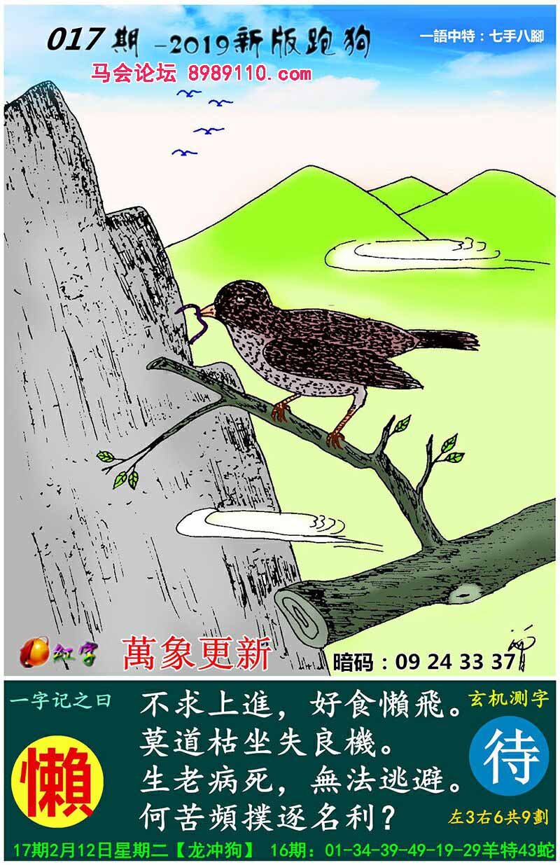 主题 : 017期:新版跑狗一字記之曰【懶】玄機測字:《待》
