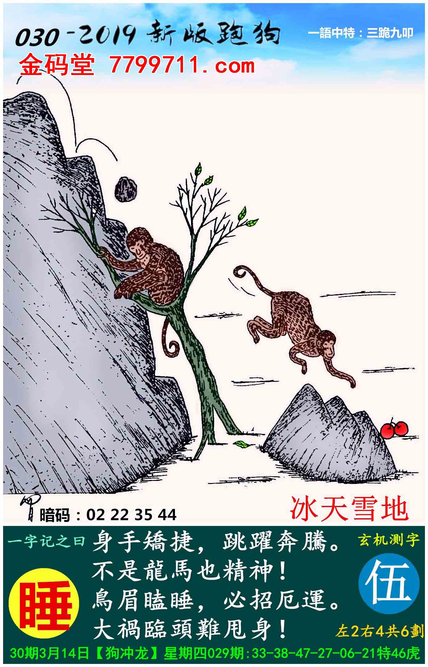 030期:新版跑狗一字記之曰【睡】玄機測字:《伍》
