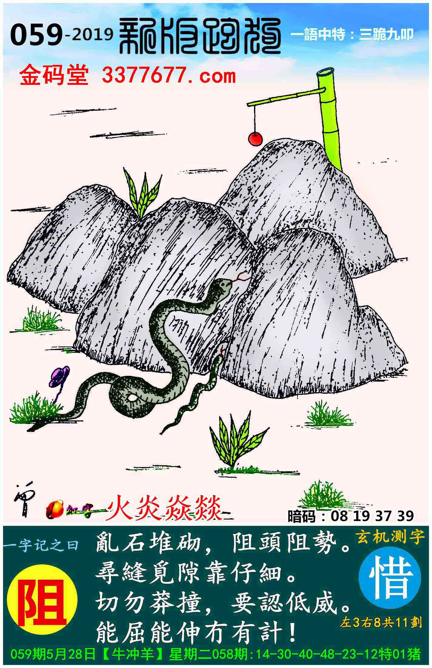 059期新版跑狗一字記之曰:【阻】