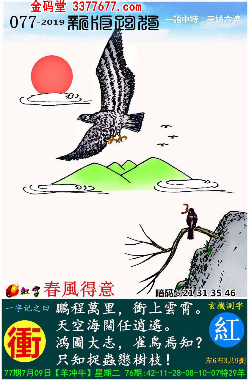 077期新版跑狗一字記之曰:【衝】