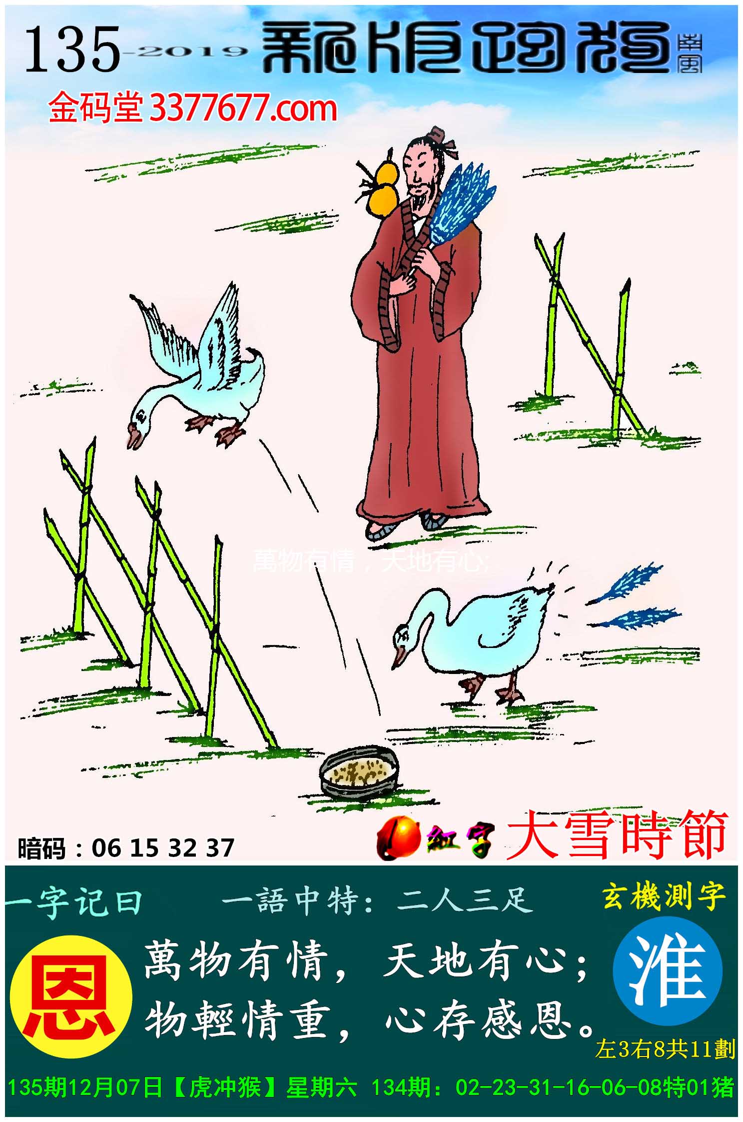 135期:新版跑狗一字記之曰【恩】玄機測字:《淮》
