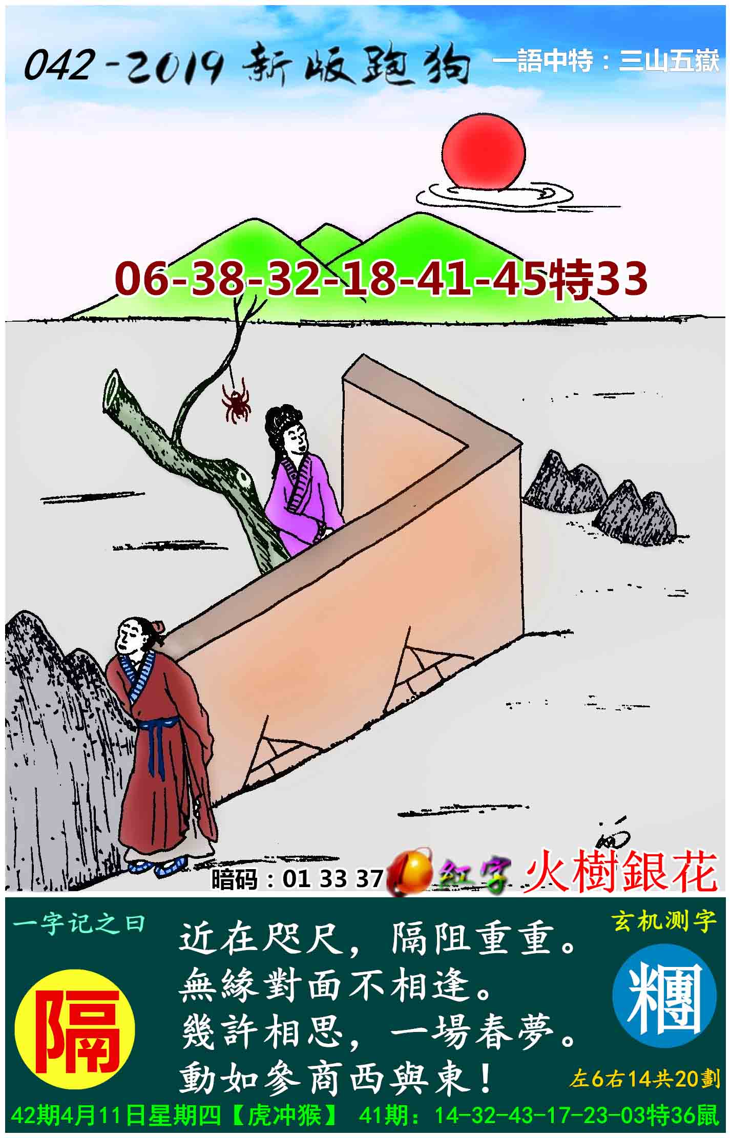 014期新版跑狗一字記之曰:【隔】