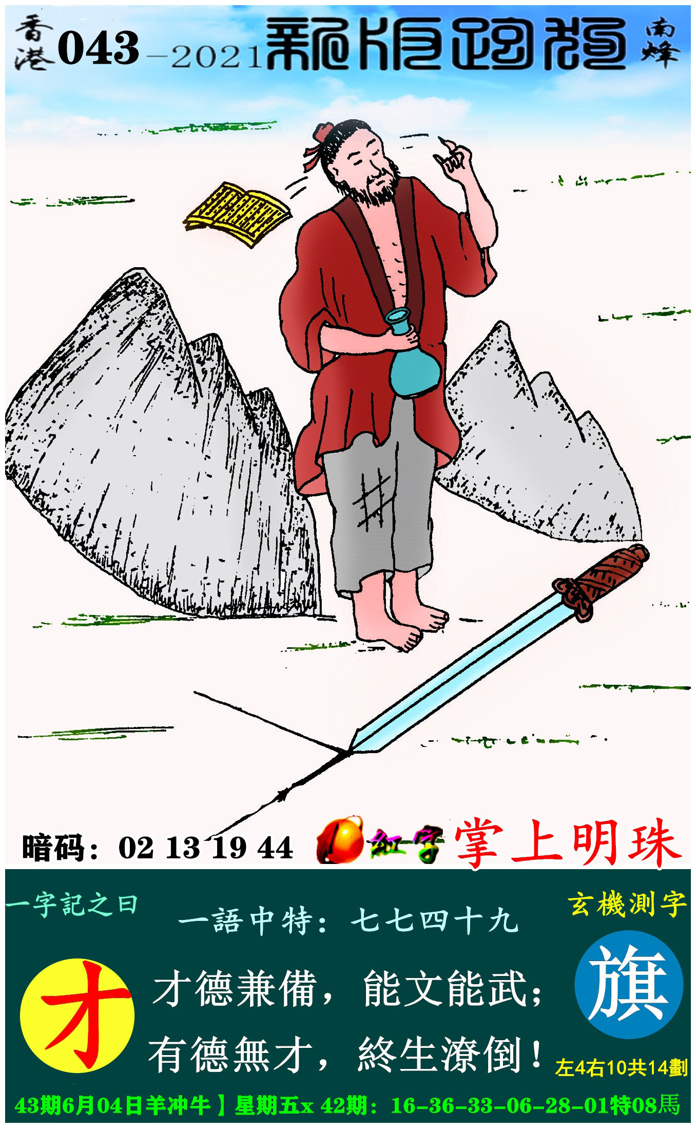 043期:新版跑狗一字記之曰【才】玄機測字:《旗》