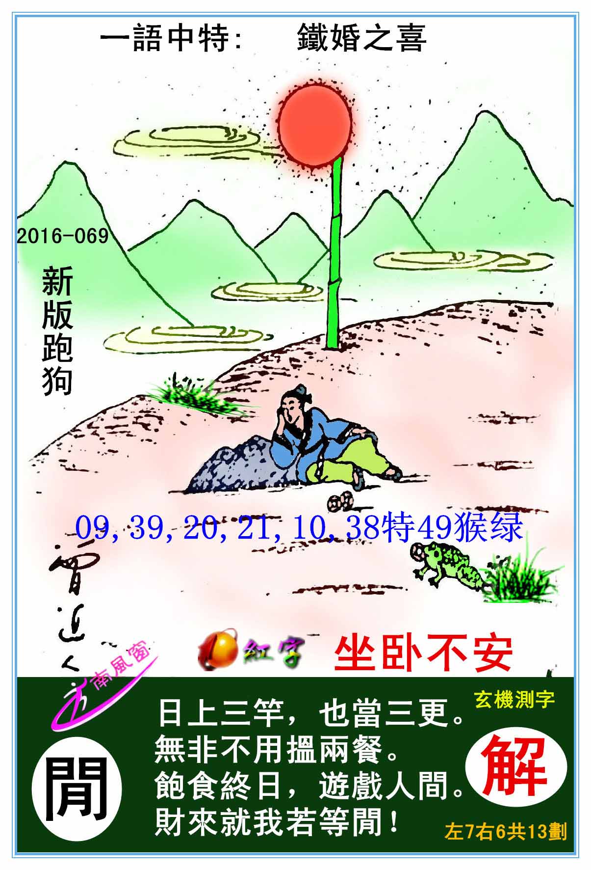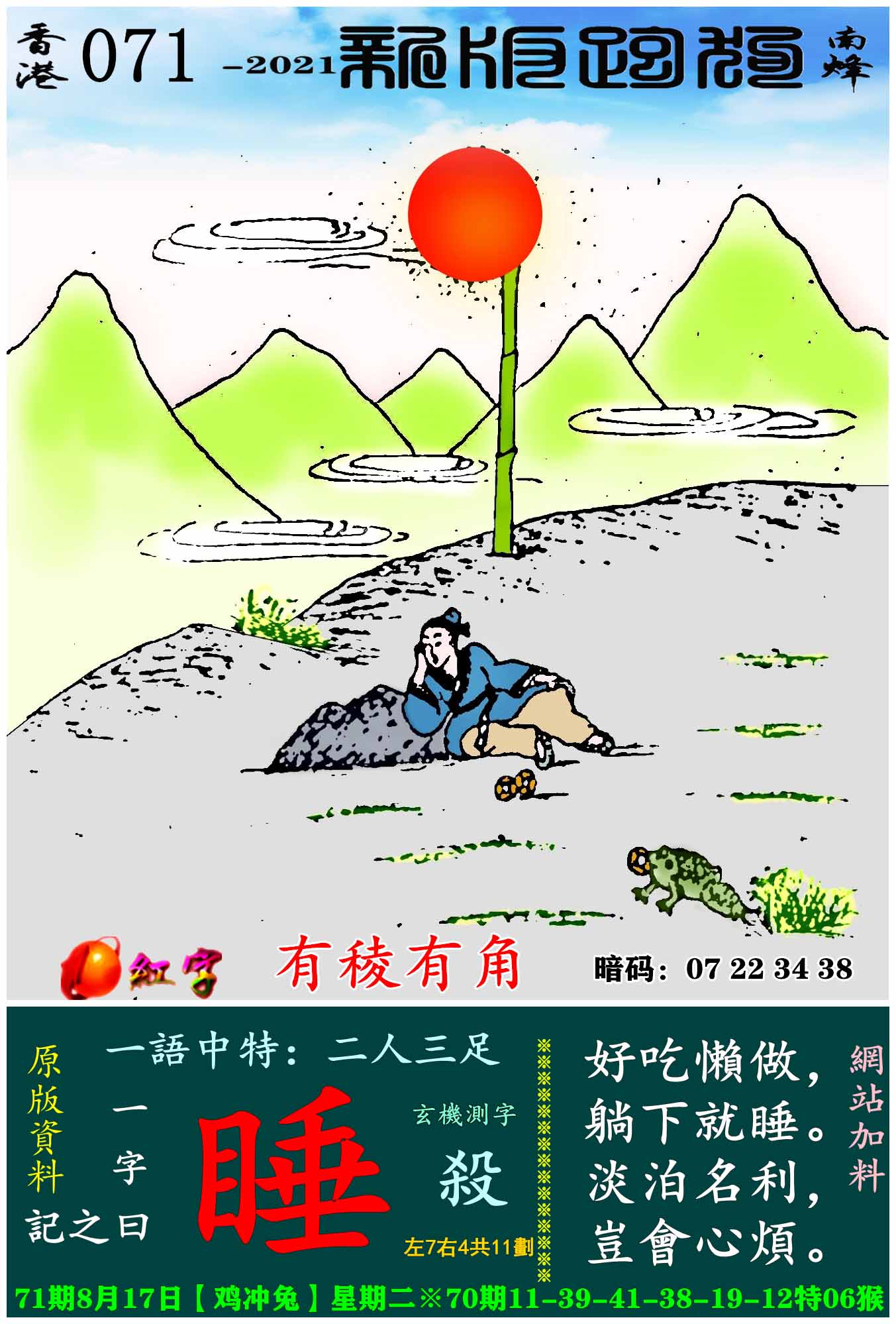 071期新版跑狗一字記之曰:【睡】