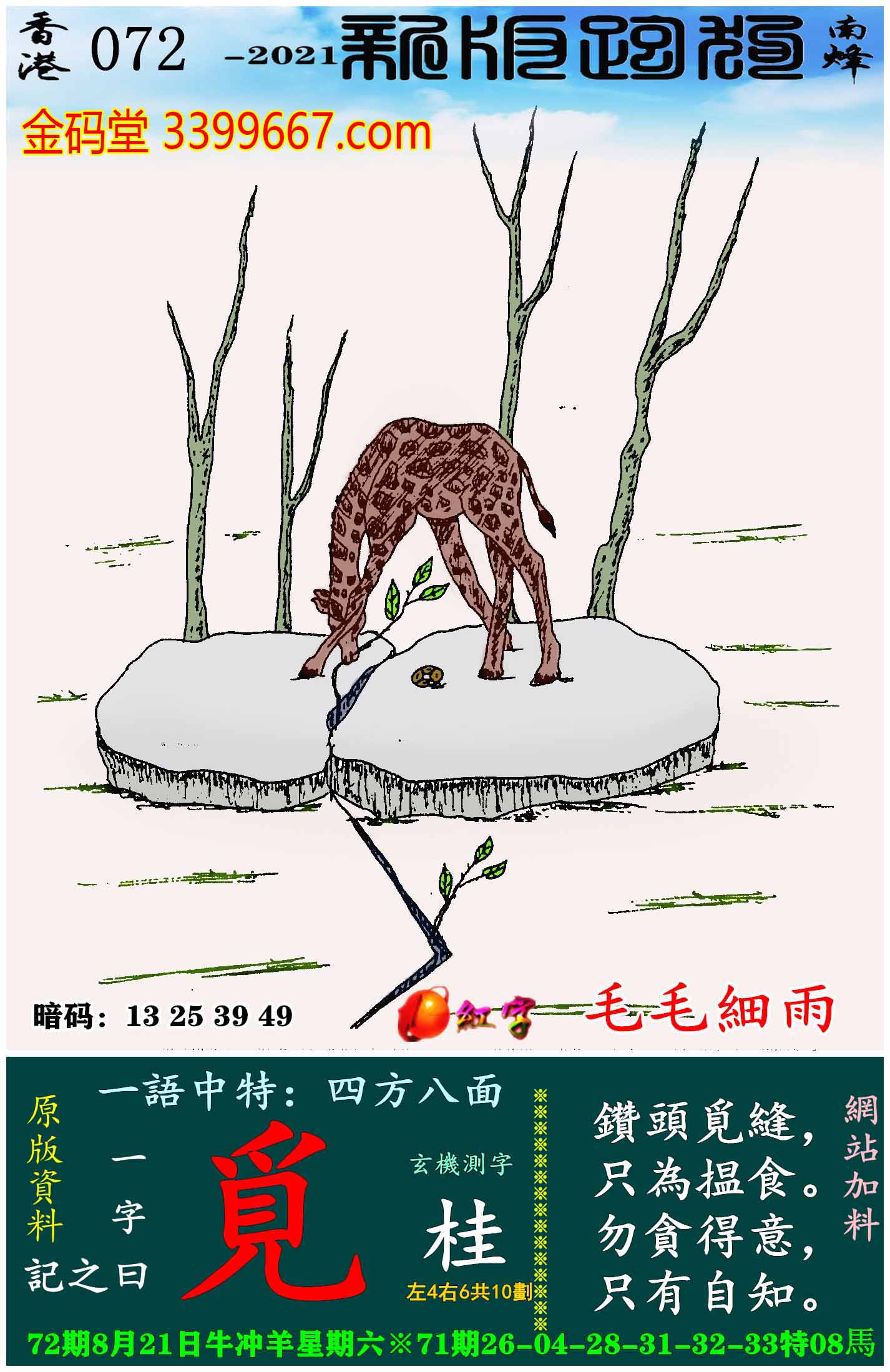 072期新版跑狗一字記之曰:【覓】