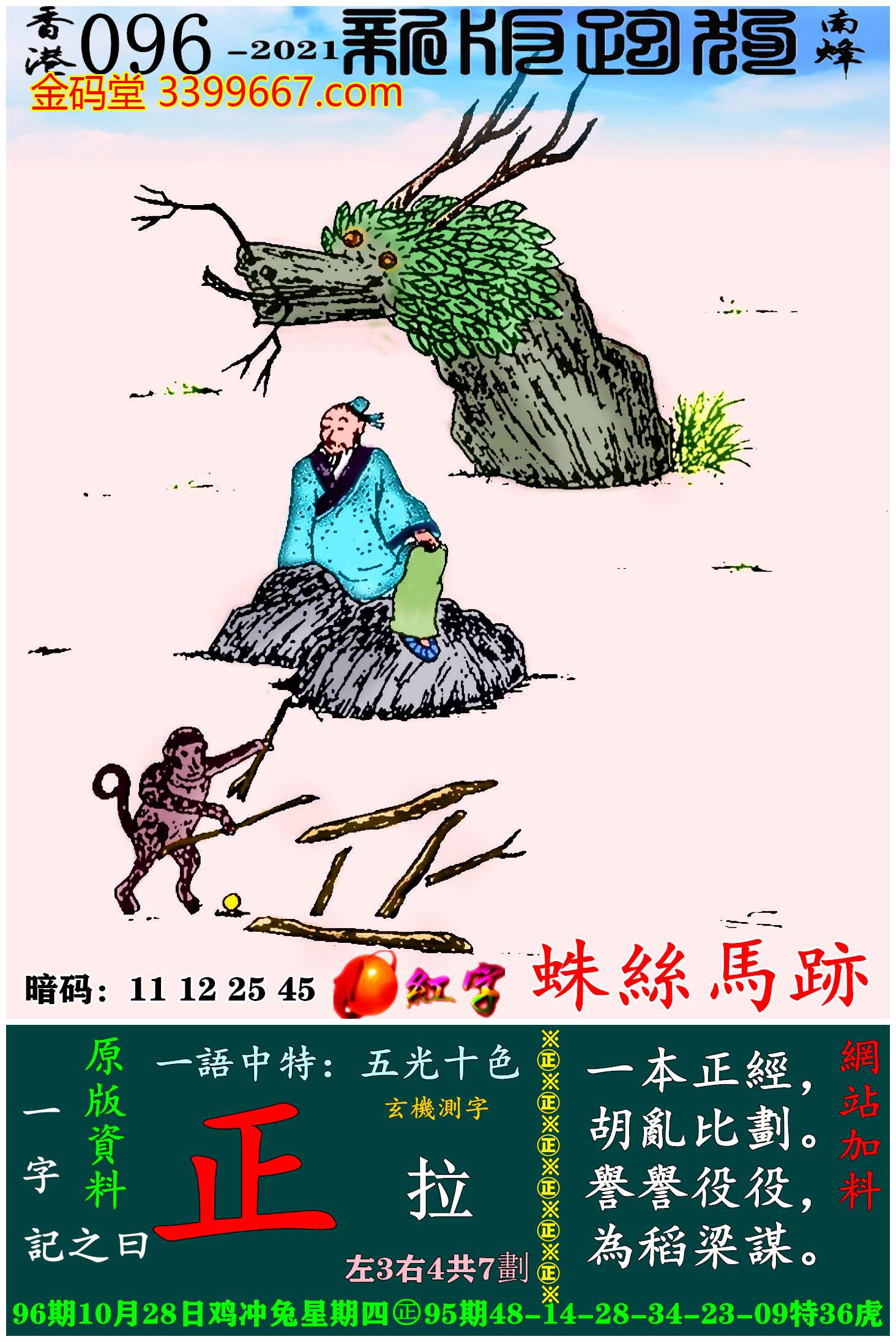 096期:新版跑狗一字記之曰【正】玄機測字:《拉》