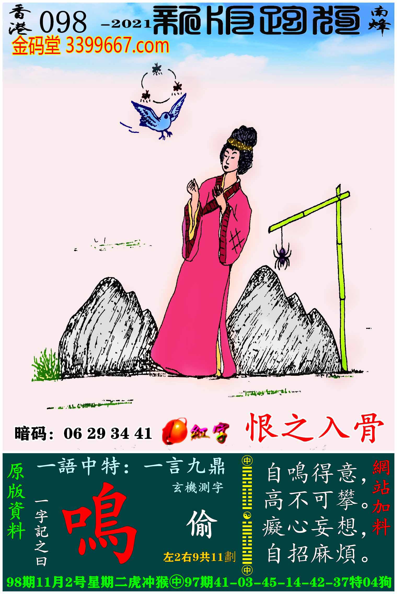 098期:新版跑狗一字記之曰【鳴】玄機測字:《偷》