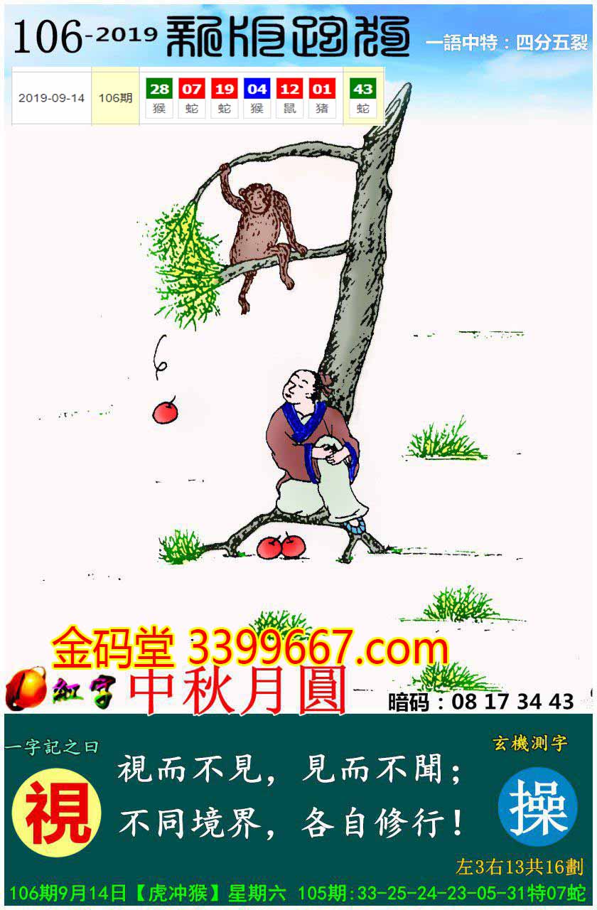 以下玄机图与本期新版玄机图相似
