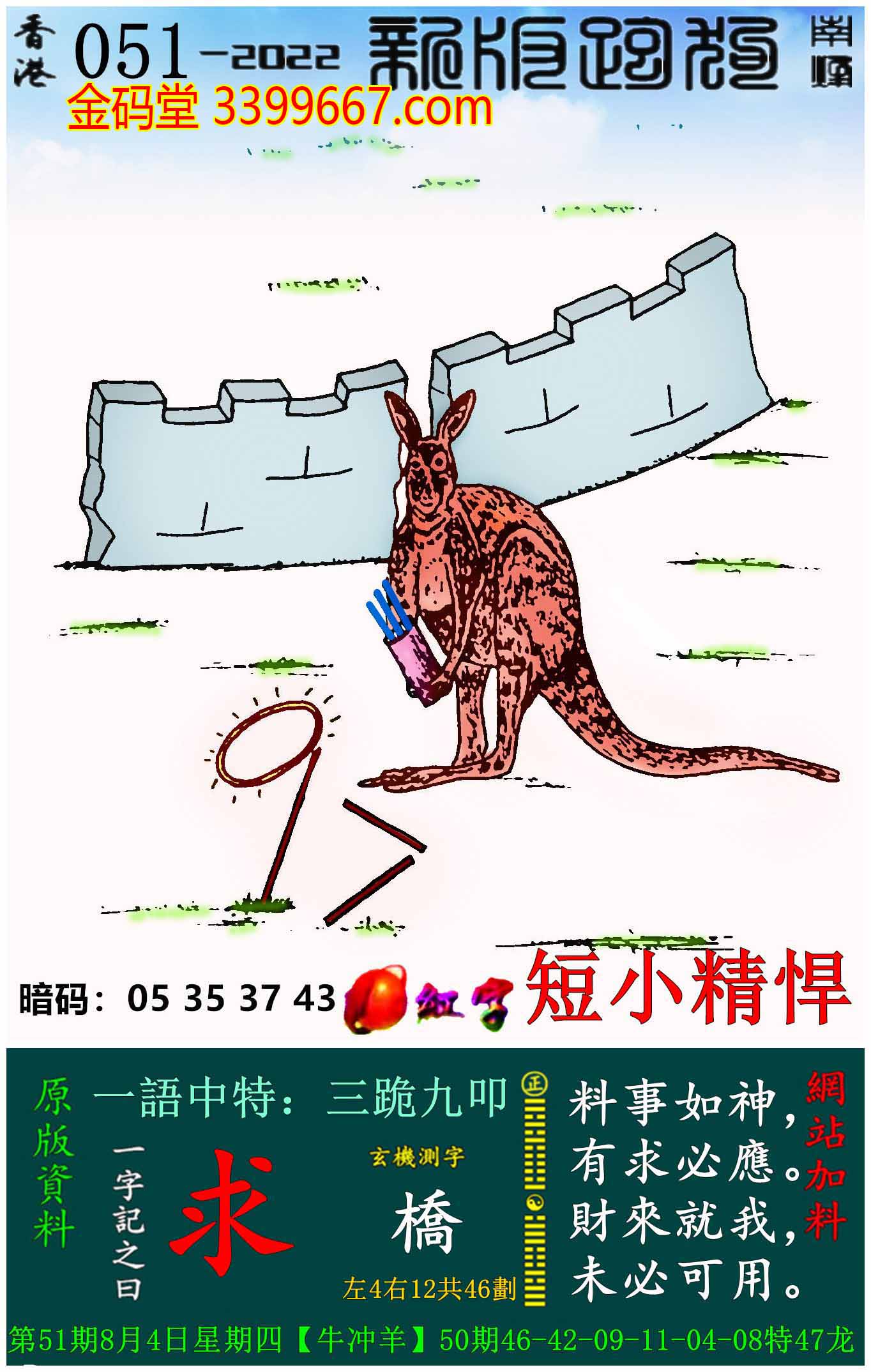 051期新版跑狗一字記之曰:【求】