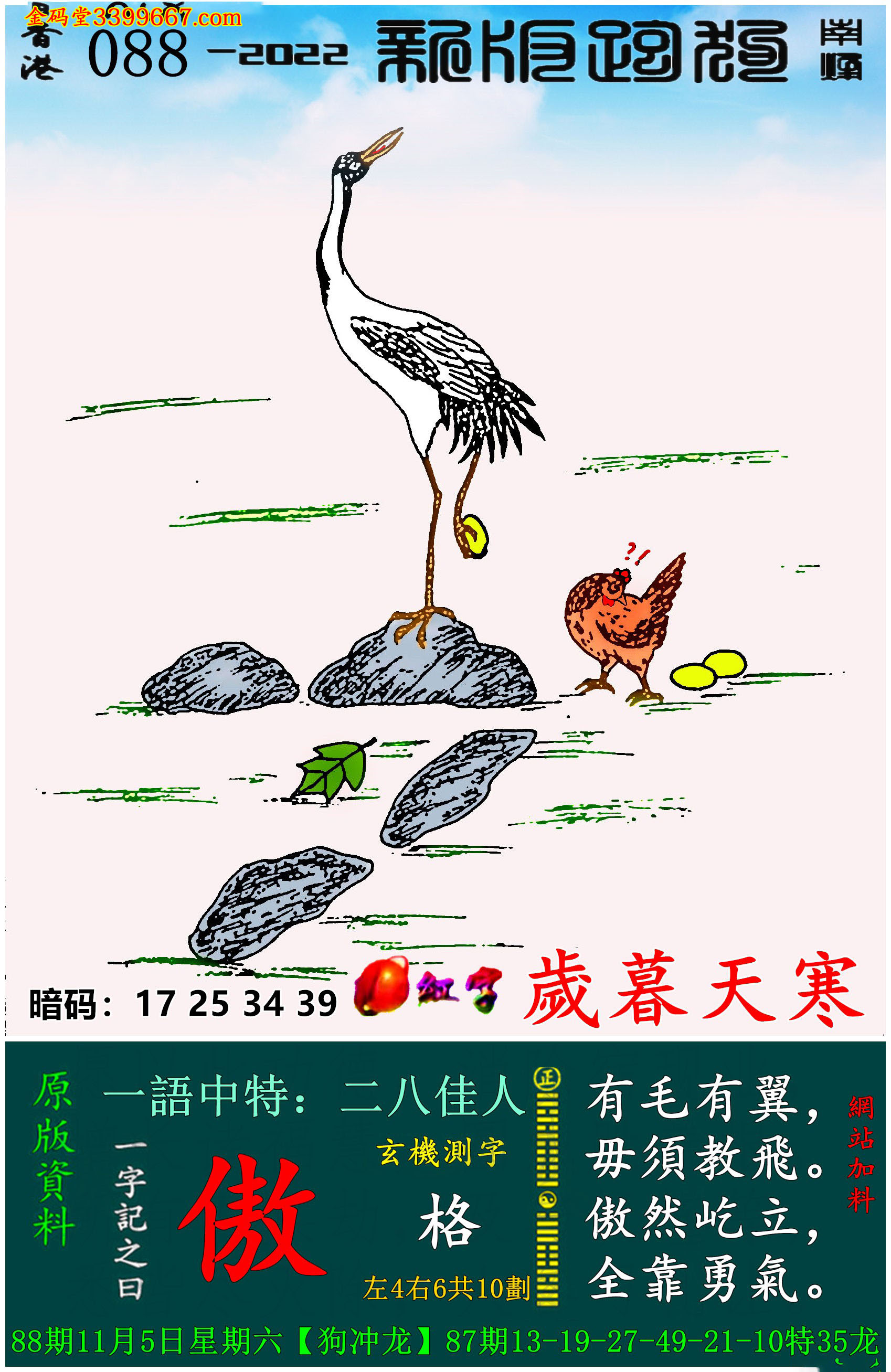 088期:新版跑狗一字記之曰【傲】玄機測字:《格》