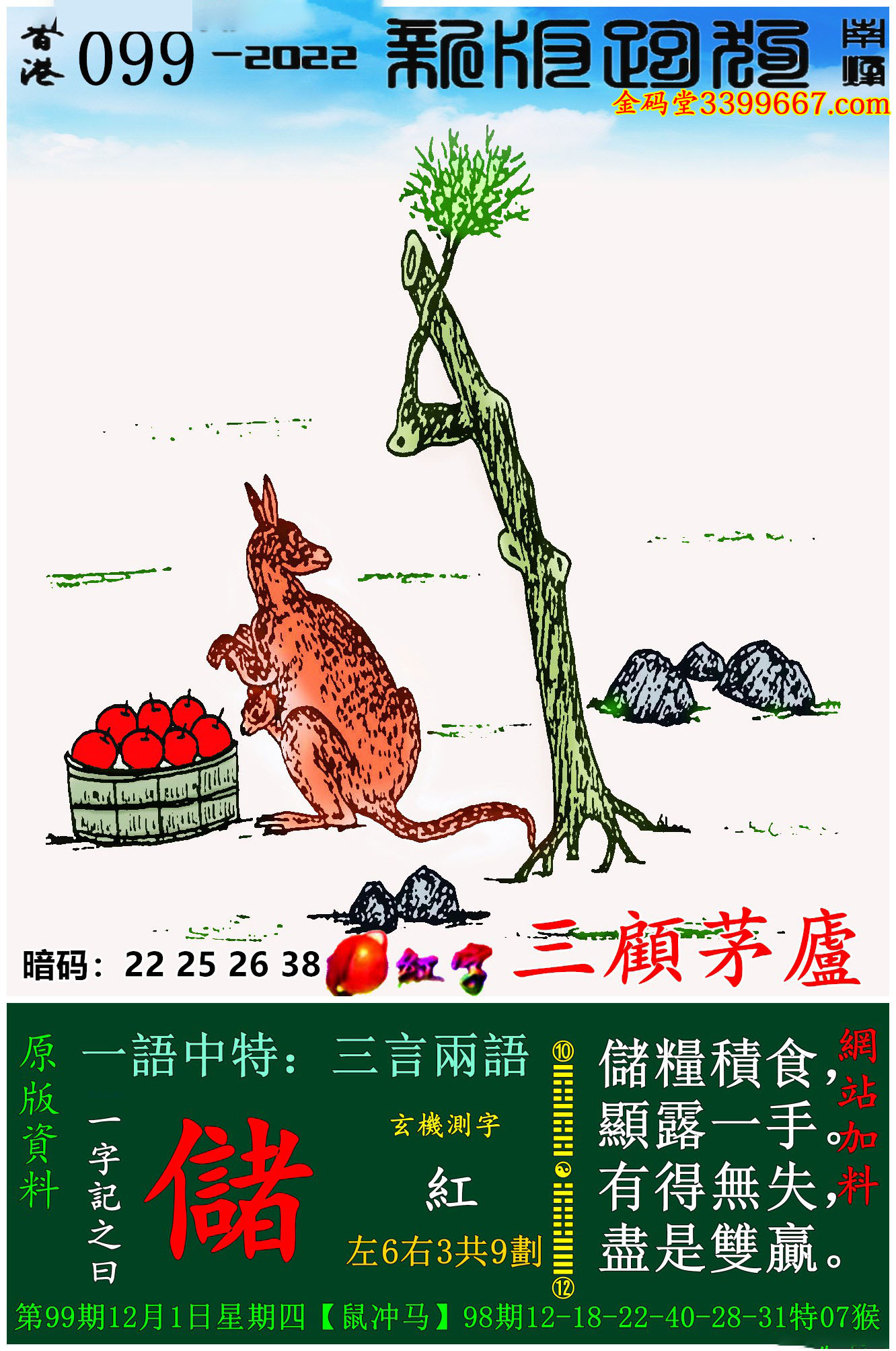 主题 : 099期:新版跑狗一字記之曰【儲】玄機測字:《紅》