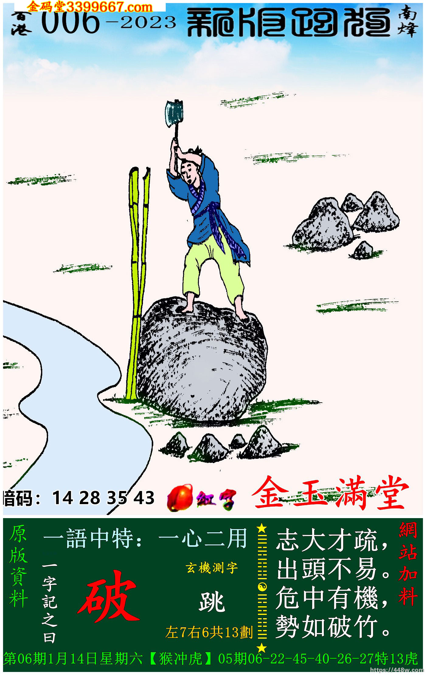 006期:新版跑狗一字記之曰【破】玄機測字:《跳》