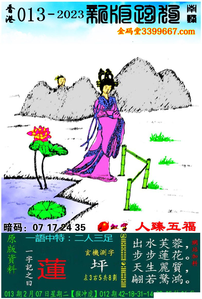 013期:新版跑狗一字記之曰【蓮】玄機測字:《坪》