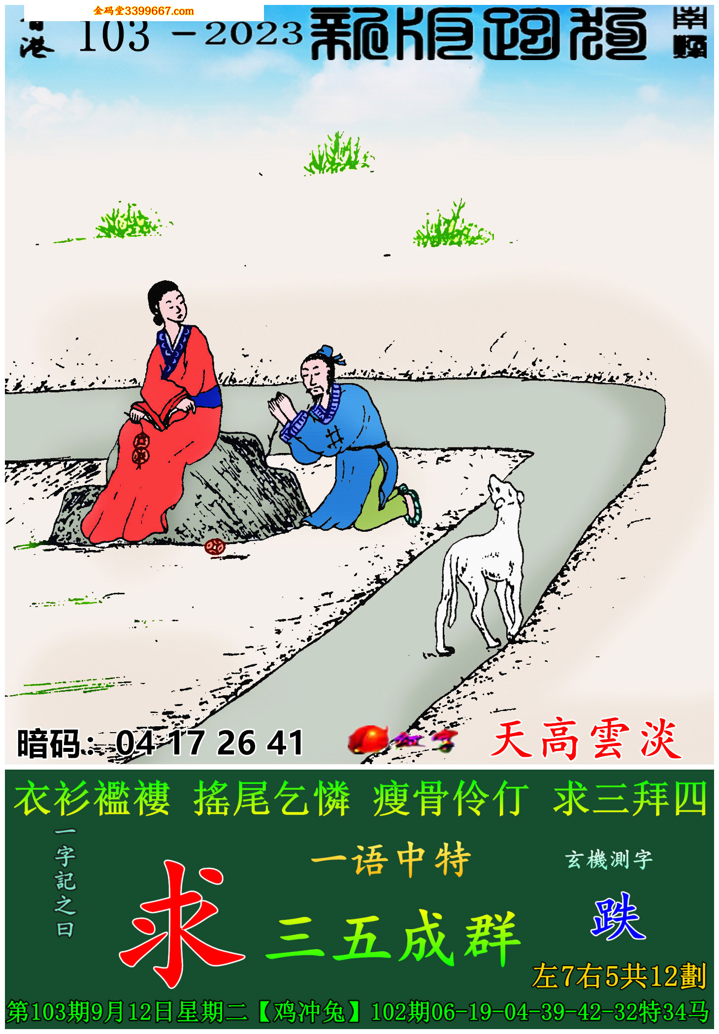 103期:新版跑狗一字記之曰【求】玄機測字:《跌》