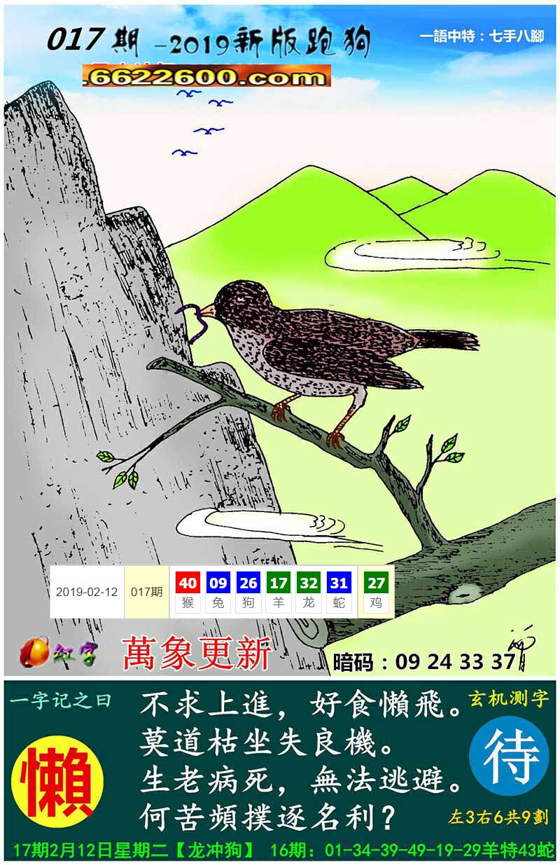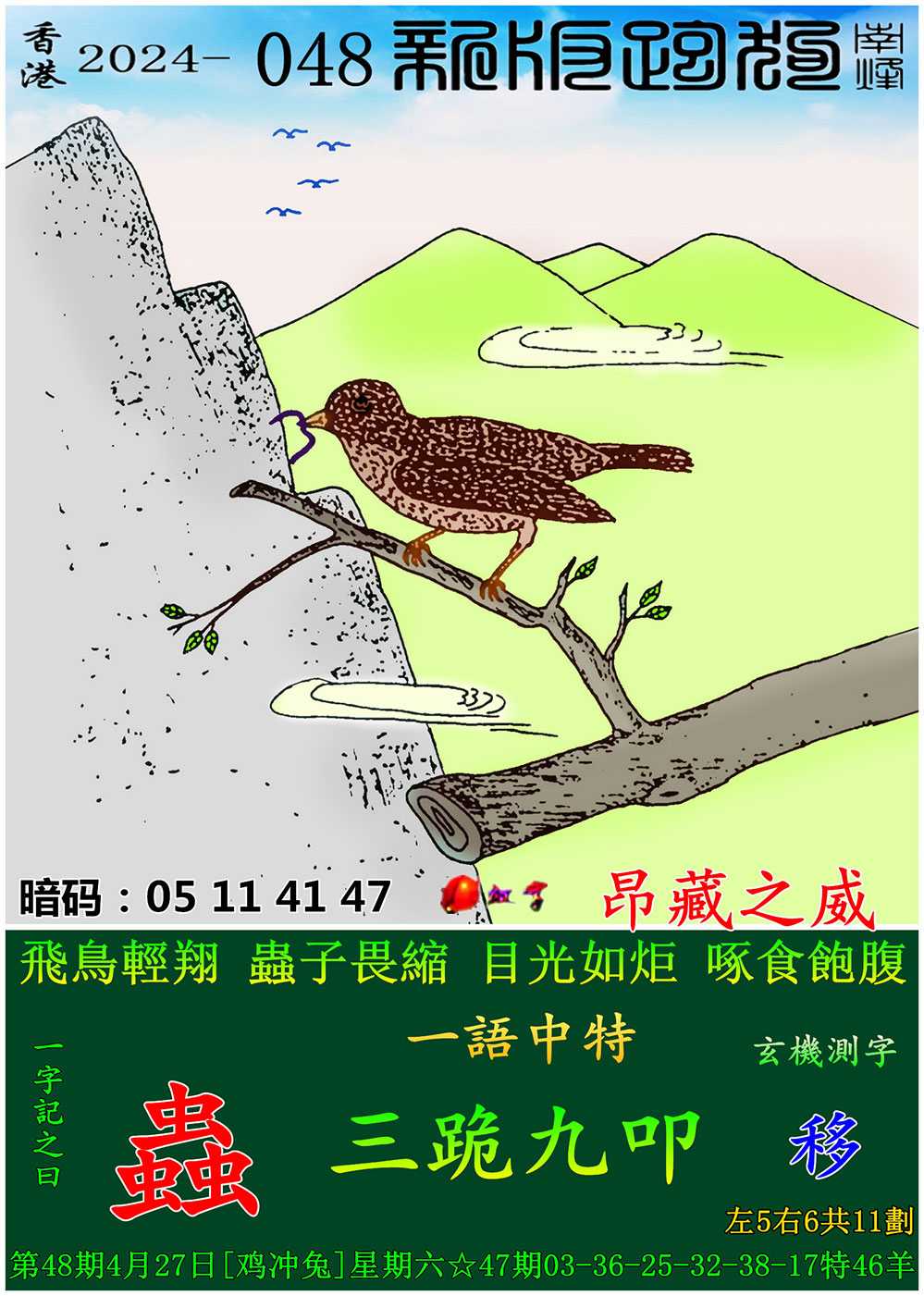 主题 : 048期:新版跑狗一字記之曰【蟲】 玄機測字:【移】