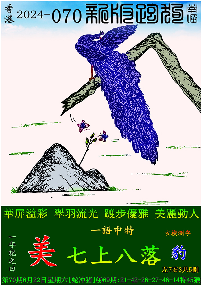 070期:新版跑狗一字記之曰【美】 玄機測字:【豹】