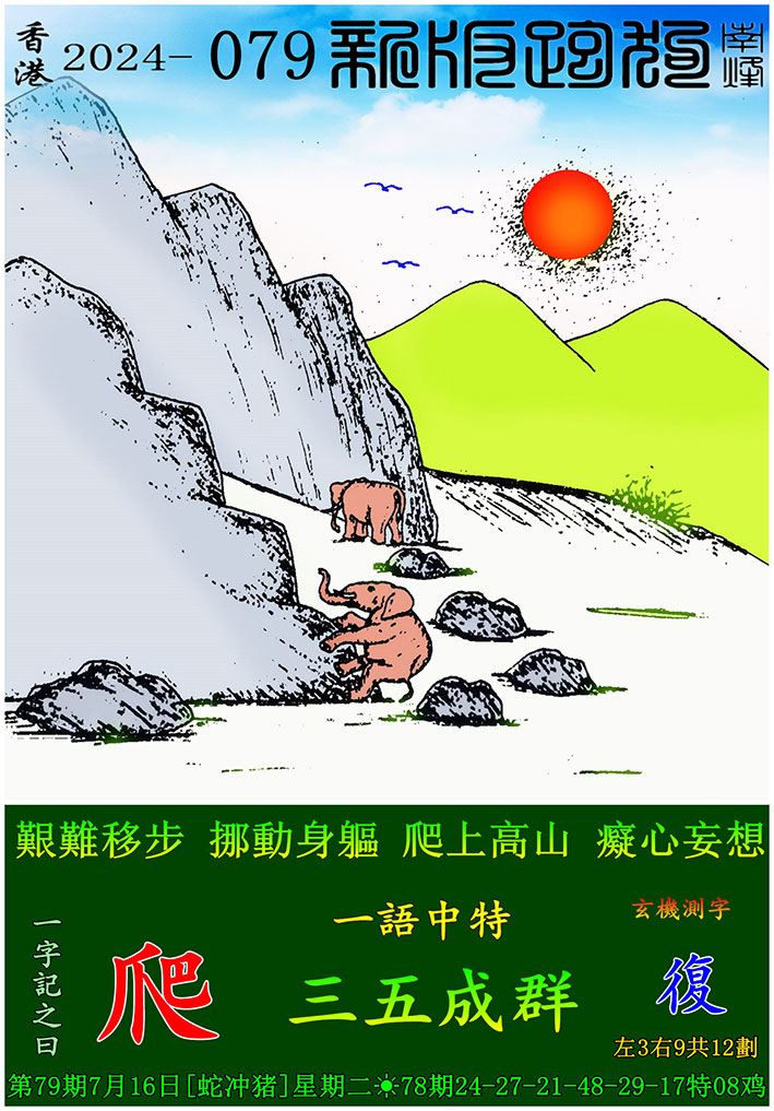 079期新版跑狗一字記之曰:【爬】