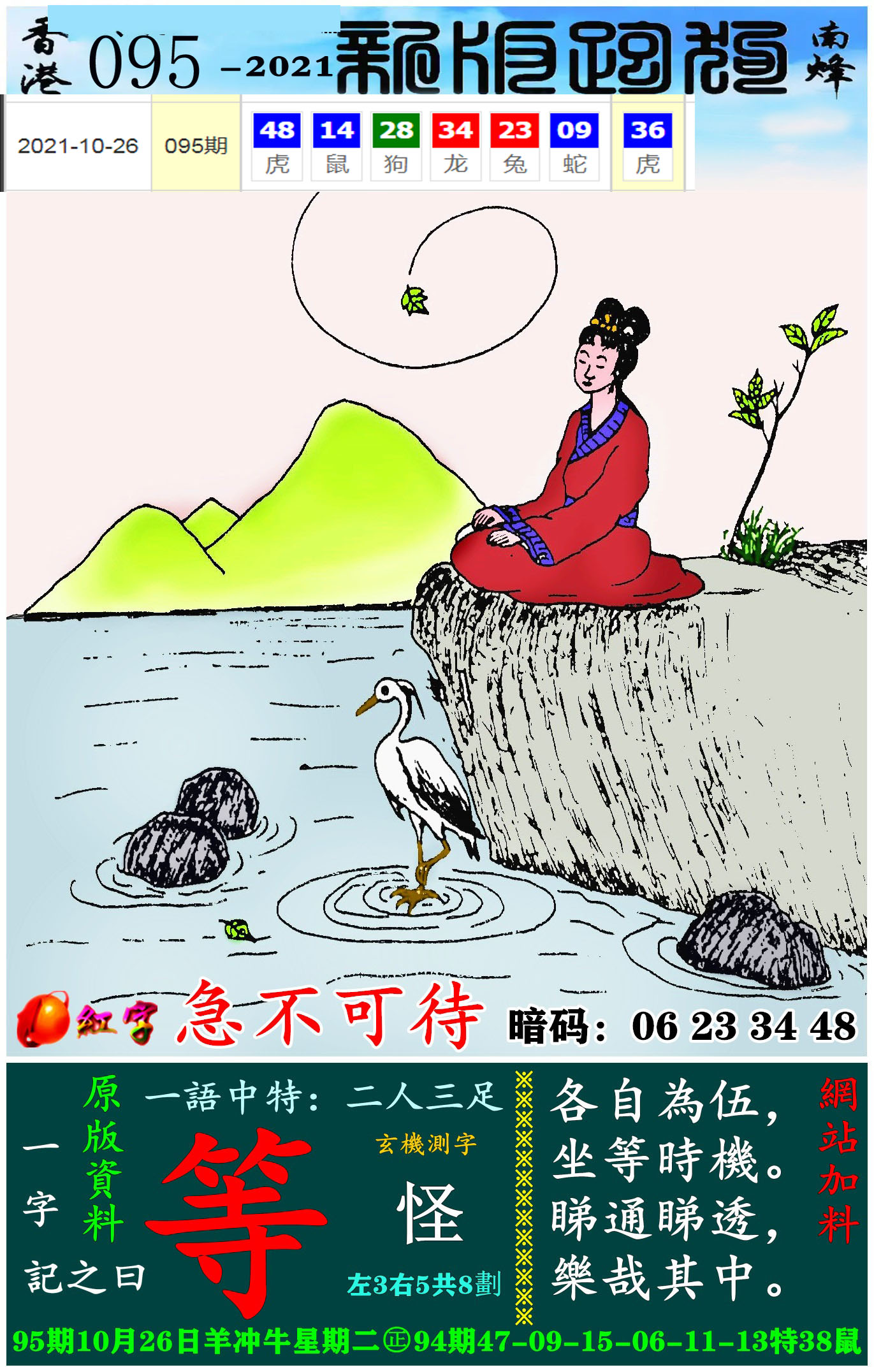 095期:新版跑狗一字記之曰【等】 玄機測字:【輸】