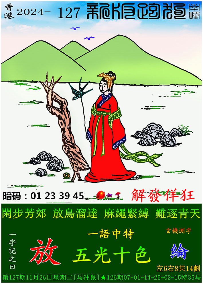 127期:新版跑狗一字記之曰【放】 玄機測字:【綸】