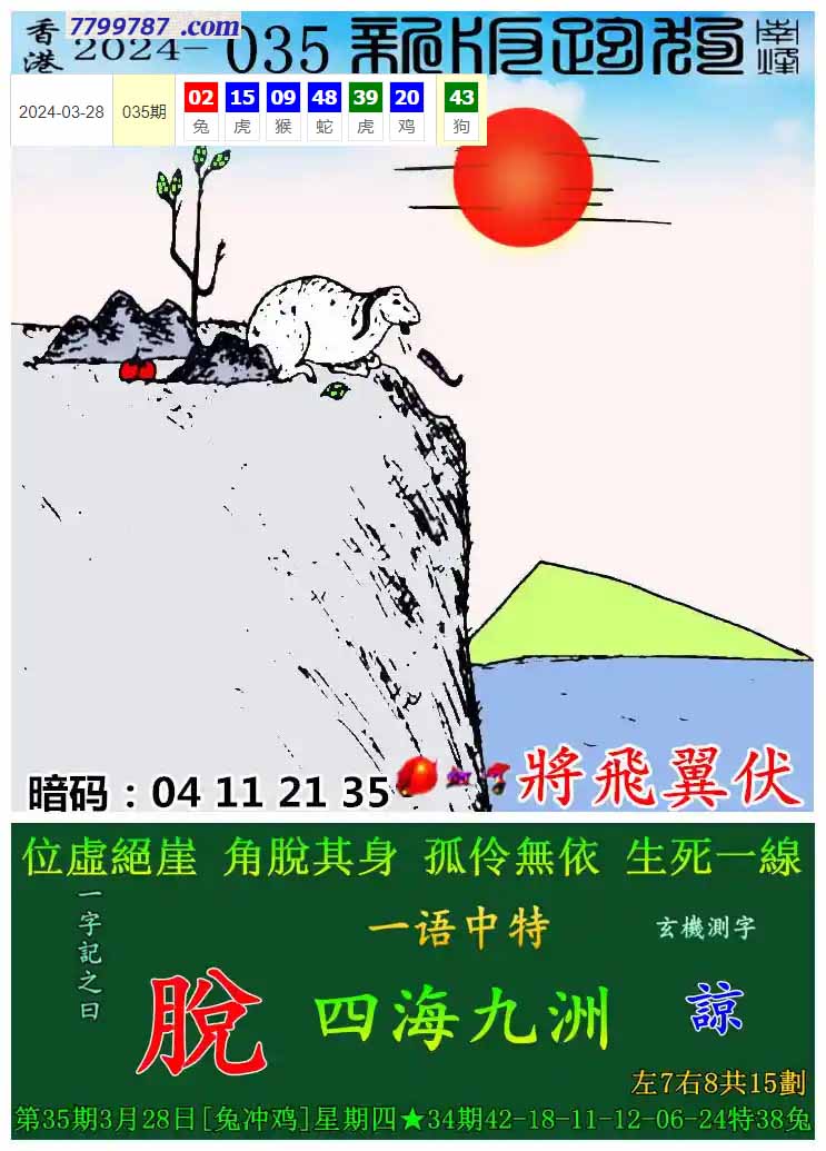 066期:新版跑狗一字記之曰【脱】 玄機測字:【鐘】