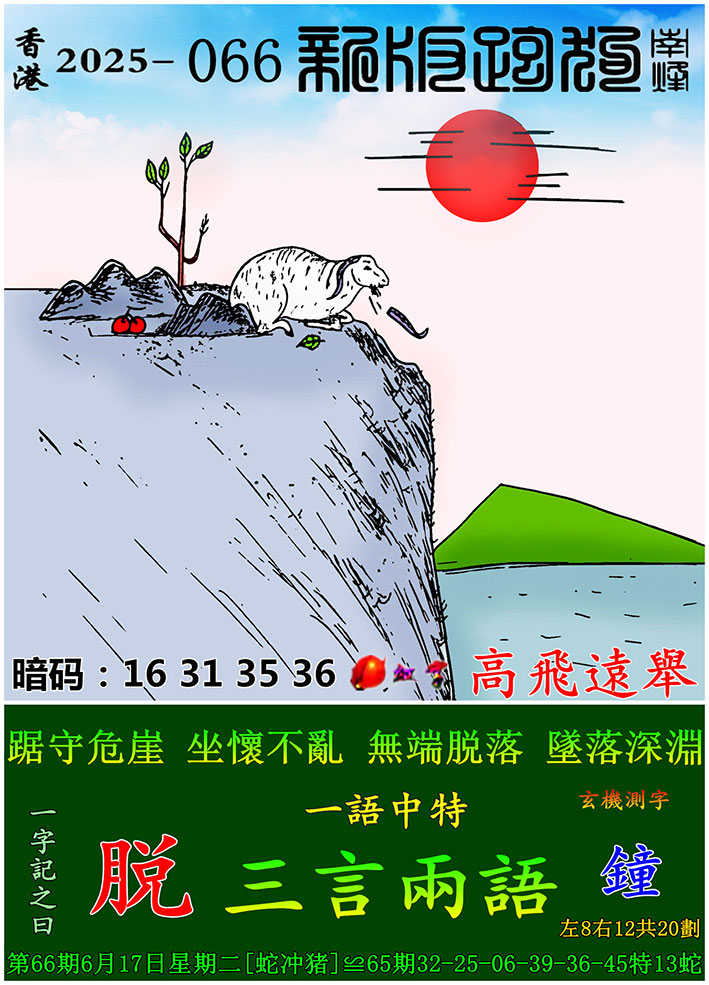 主题 : 066期:新版跑狗一字記之曰【脱】 玄機測字:【鐘】