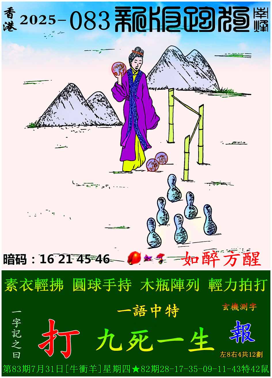 083期:新版跑狗一字記之曰【打】 玄機測字:【報】