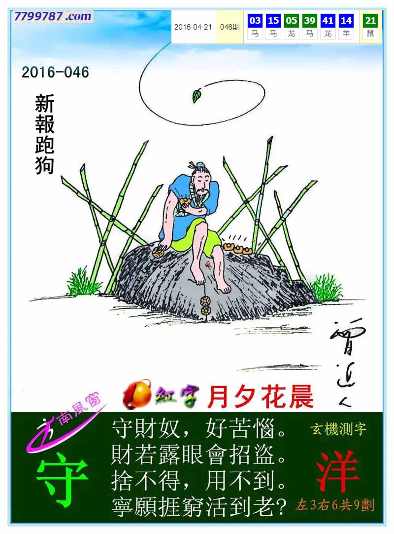 110期:新版跑狗一字記之曰【錢】 玄機測字:【增】