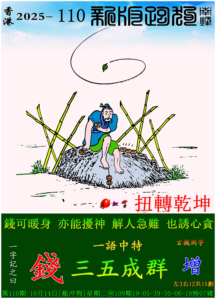 主题 : 110期:新版跑狗一字記之曰【錢】 玄機測字:【增】