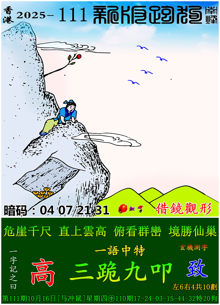 主题 : 111期:新版跑狗一字記之曰【高】 玄機測字:【致】