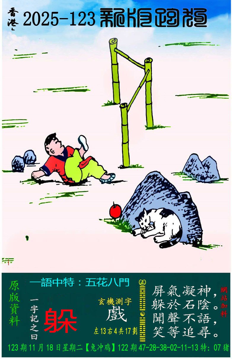 主题 : 123期:新版跑狗一字記之曰【躲】 玄機測字:【戲】