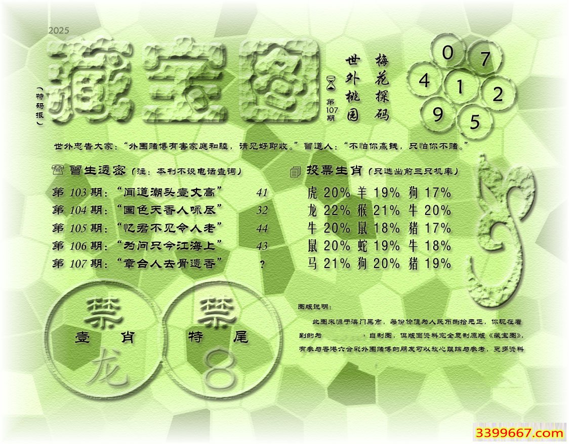 主题 :107期藏寶圖 新:面对参江背伍峰 老:章台人去骨遗香 禁:龙 禁:8尾 |