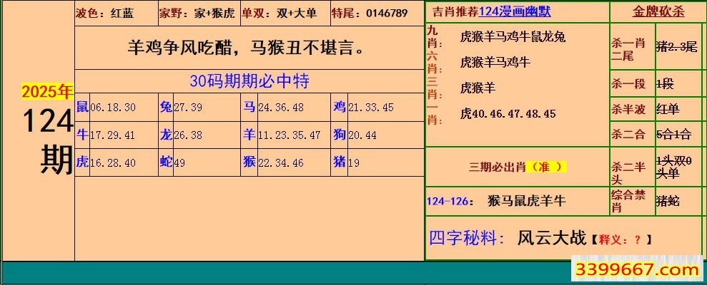 主题 :124期:小鱼儿30码期期中+幽默猜测